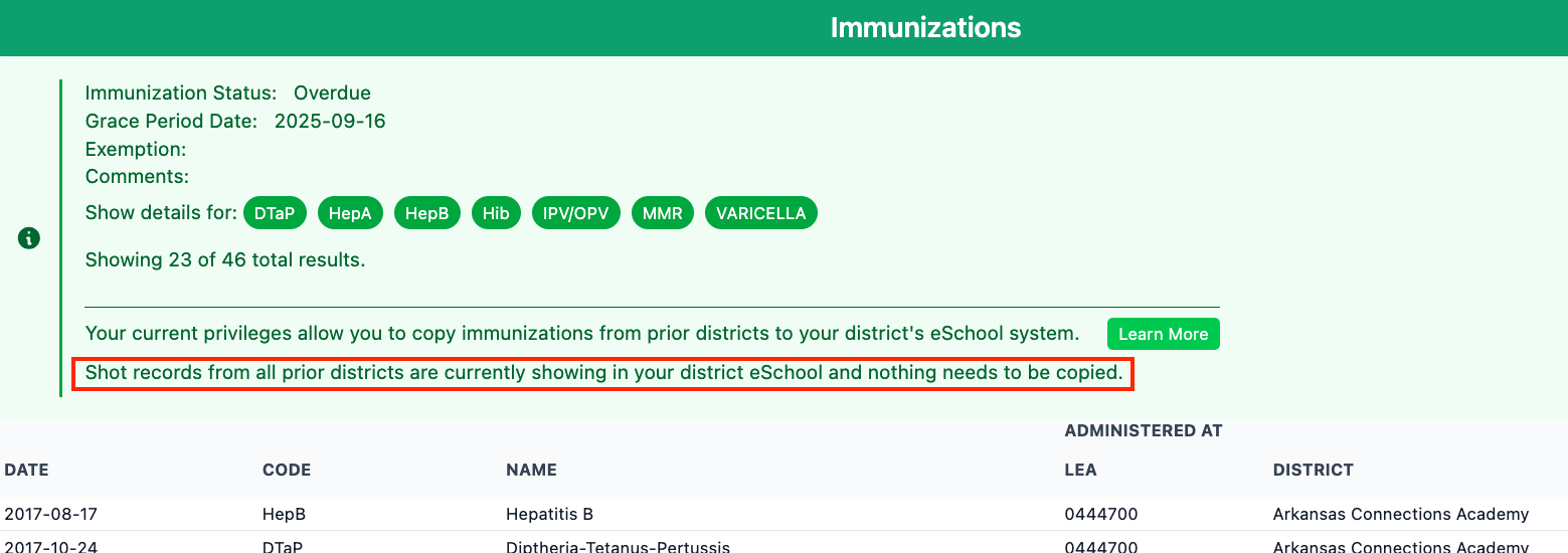 “Shot records from all prior districts are currently showing...nothing needs to be copied”.