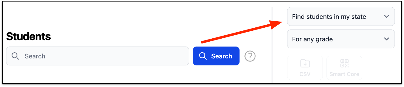 For students in your classes, school, or district, with appropriate access, you can download a list of students (“Download CSV”), print Smart Core Letters for students/parents (“Smart Core PDF”), and/or print student transcripts (“Transcripts PDF”).